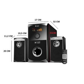 Dimensões aproximadas do produto (A x L x P): 1 Subwoofer: 31 x 17 x 32 cm 2 caixas de som auxiliares: 20 x 10,5 x 11,2 cm