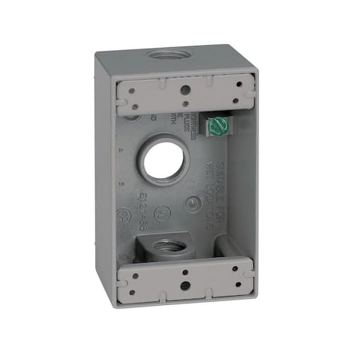 SIGMA ENGINEERED SOLUTIONS 14250 Caixa de tomada elétrica de metal, à prova de intempéries, plugue de montagem fácil e protetor de receptáculo, cinza, (3) furos de 1/2 polegada, 1 caixa de gangue