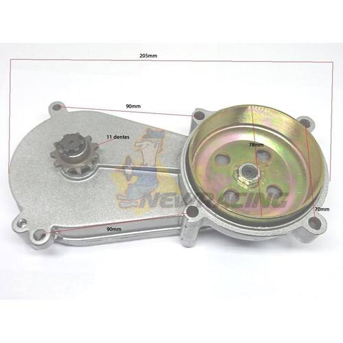 Caixa de transmissão para motores 49 cc 2 tempos. Pode ser usado para quadriciclos, mini motos e motores 2 tempos em geral. Produto de ótima qualidade