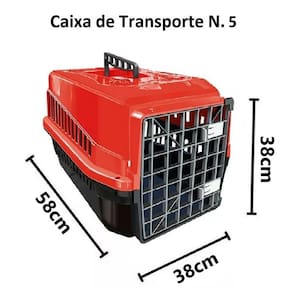 Especificações: - Produzida totalmente em plástico polipropileno com alta durabilidade - A Caixa de Transporte para Cães e Gatos é excelente para transportar seu Cão ou Gato com segurança e conforto durante viagens ou consultas ao veterinário - Fixação da tampa superior com a base por parafuso inox, sendo sua montagem muito fácil - Higiênica: pode ser lavada - Com ventilação lateral - Apto para viagens de avião - Tem alça reforçada, porta com trava de segurança. - Peso suportado de até 15Kg - Cor: Vermelho - Caixa de transporte tamanho N5