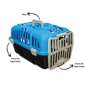 Caixa de Transporte Pet Joy Número 2 Azul - Furacão Pet Informações do Produto: A caixa de transporte pet é indicada para cães e gatos de até 10kg. Não tem parafusos ou outros objetos perfurantes, é de fácil montagem, super resistente, higiênica e fácil de lavar. Com abertura perfeita da porta para que não machuque seu pet na hora de colocá-lo ou tirá-lo.