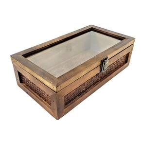 Caixa Decorativa de Madeira com Rattan e Tampa de Vidro Inigual Decor