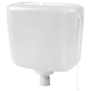 A Caixa Elevada é um sistema de descarga com volume regulável, de 6,8 a 9 litros. A regulagem interna permite uma descarga controlada por meio do acionamento com cordinha, que pode ser interrompido pelo usuário a qualquer momento, conforme a necessidade de limpeza da louça. Características • Fabricada em plástico resistente. • Fácil de instalar: já vem com régua suporte e parafusos para fixação. • Dupla entrada para engate de água (nas laterais do produto), permite escolher a posição lateral de acionamento (direito ou esquerdo). • Descarga controlada de 6,8 a 9 L (modelo C17/S). • Possui vedante em silicone, que garante maior estanqueidade e durabilidade. • Tampa de inspeção ampla, que facilita manutenção. • Peça única (sem encaixes e conexões). Uso A Caixa Elevada é instalada junto a bacias sanitárias convencionais, visando a limpeza completa dos dejetos, encaminhando-os para a rede de esgoto. Ideal para banheiros com bacia sanitária convencional (sem caixa acoplada), sem instalação apropriada para válvula e com pouco espaço disponível para disposição das peças do banheiro.