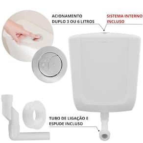 Caixa de descarga baixa branca com duplo acionamento + conversor de descarga