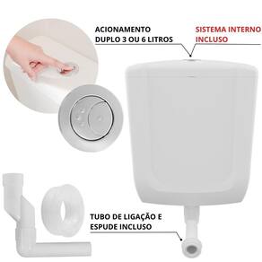 Caixa de descarga baixa branca com duplo acionamento + conversor de descarga