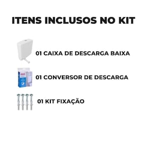 Caixa de descarga baixa branca com duplo acionamento + conversor de descarga