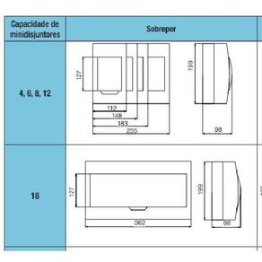 Instalação de 4, 8, 12, 18, 24 e 36 módulos de disjuntores; Acabamento da tampa fumê e branco; Barramentos para conexão e distribuição acessórios opcionais ; Barramentos de neutro e terra acessórios opcionais .