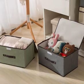 Caixa dobravel organizadora porta treco brinquedo multiuso desmontavel cesto empilhavel tecido com tampa organização gua