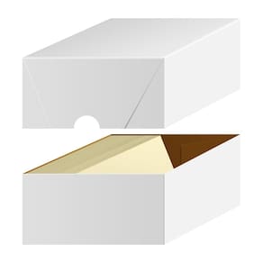 DESIGN DURÁVEL. Feito de aglomerado espesso e durável de 30 Pt. (624 g/m2) com um lindo revestimento branco. É uma caixa confiável e resistente com uma conveniente tampa removível.
