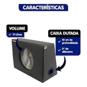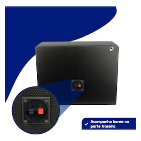 CARACTERÍSTICAS: - Design Durável: A caixa é feita de MDF de 15 mm com acabamento em courvin perfurado preto, combinando estilo e resistência. - Eficiência: Com volume de 15 litros e um duto frontal de 2", a caixa otimiza o desempenho do subwoofer para som de alta qualidade. - Fácil Instalação: Plugs parafusados e terminais de conexão facilitam a instalação e o ajuste do sistema de som.
