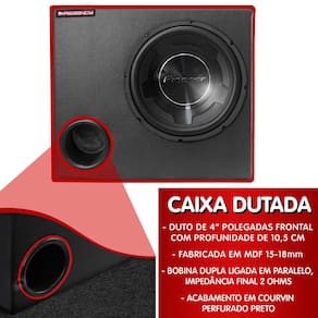 - Eficiência: Com volume de 50 litros e um duto frontal de 4", a caixa otimiza o desempenho do subwoofer para som de alta qualidade.