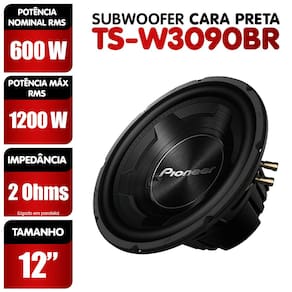 - Alta Potência: O subwoofer TS-W3090BR tem potência máxima de 1.200 W e potência RMS de 600 W, garantindo graves profundos e poderosos.