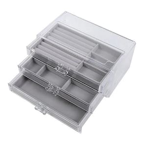 Caixa em Acrílico Organizador De Maquiagem/joias 3 Gavetas CORES - CINZA / BEGE