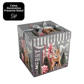 Transforme suas entregas de Natal em momentos ainda mais especiais com esta charmosa embalagem natalina decorada tipo caixa, perfeita para panetones, doces, lembranças e presentes em geral. Com design quadrado e estampa exclusiva em vermelho com tema natalino, ela traz beleza e praticidade para suas celebrações de fim de ano.