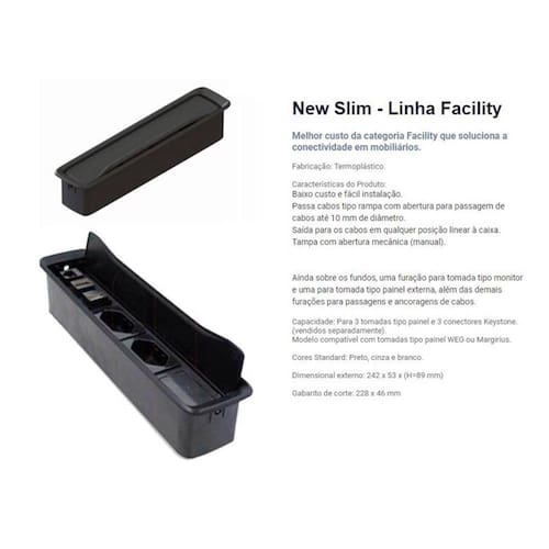 New Slim - Linha Facility (Modelo já acompanha 03 tomadas de 10A)