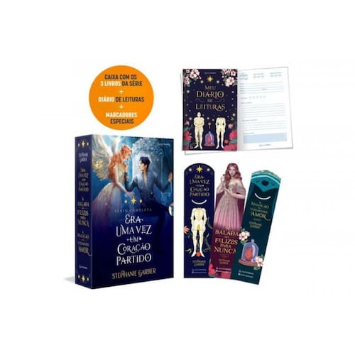 Todos os volumes da trilogia Era uma vez um coração partido, best-seller do New York Times , agora disponíveis juntos. Até onde você seria capaz de ir por um final feliz? Desde pequena, Evangeline Raposa sempre acreditou no amor verdadeiro e em finais felizes... até descobrir que o amor de sua vida vai se casar com outra pessoa. Desesperada para impedir o casamento e curar seu coração ferido, Evangeline faz um acordo com o carismático, porém perverso, Jacks, o Príncipe de Copas. Em troca de sua ajuda, ele pede três beijos, a serem dados no momento e lugar de sua escolha. Mas após o primeiro beijo prometido de Evangeline, ela descobre que negociar com um imortal é um jogo perigoso -- e que Jacks quer muito mais do que ela havia prometido. Ele tem planos para Evangeline, planos que terminarão no maior "felizes para sempre" ou na mais requintada tragédia. Era uma vez um coração partido, vol. 1: Evangeline Raposa cresceu acreditando em finais felizes. Mas essa crença se abala quando descobre que seu amado irá se casar com outra pessoa. Desesperada, ela aceita fazer um acordo com Jacks, o Príncipe de Copas, e logo percebe que negociar com ele é um jogo perigoso. Uma fantasia inesquecível que une romance e magia. A balada do felizes para nunca, vol. 2: Após ser traída pelo Príncipe de Copas, Evangeline Raposa jura nunca mais confiar nele. Depois de descobrir a própria magia, ela acredita que pode usá-la para restaurar sua chance de um final feliz. Mas um feitiço assassino é lançado, e, para quebrá-lo, Evangeline e Jacks terão de lutar contra novos inimigos. A maldição do verdadeiro amor, vol. 3: Depois de acordar sem memória, Evangeline se vê casada com Apollo. Agora, ela desconhece tudo que perdeu, e se depender de seu marido a jovem nunca descobrirá. Ele está determinado a garantir a ignorância da esposa, e pretende dar fim à vida de Jacks. Com sangue sendo derramado, o verdadeiro amor será colocado à prova.
