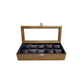 Prático e luxuoso, na linha madeira maciça encontrarmos um toque vintage, objeto decorativo onde são visíveis os veios naturais da madeira. Nossos estojos irão facilitar seu dia a dia com a organização e segurança que sua coleção precisa, além de proporcionar um ambiente mais sofisticado e elegante. Produzida com madeira natural de reflorestamento. Escolhida rigorosamente, tratada com fungicidas e anticupins. Envernizada externamente com verniz poliuretano industrial. Internamente as laterais e divisórias são revestidas com nylon aveludado. E as almofadas que acompanham o produto, normalmente são também em tecido aveludado. Na linha madeira maciça é possível observar os veios naturais da madeira. As dobradiças não são aparentes e possuem um limitador. A tampa possui visor com vidro transparente. Acompanha um fecho giratório de pressão em metal, ideal para colocar cadeado. Seus relógios sempre bem protegidos e acomodados confortavelmente, com toda segurança e facilidade no manuseio. Características das caixas para relógio: Produto fabricado em madeira maciça de qualidade; Padrão Cerejeira; Não empena, não trinca, não racha; Revestimento interno aveludado, inclusive as divisórias; Fecho giratório de pressão em metal suporta cadeado ; Tampa de vidro 2 milímetros; Acompanha almofadas para todos os casulos; Medidas aproximadas dos casulos larg x comp x alt : 7,5 x 7,5 x 7,5 cm;Relógios não acompanham o estojo Imagens meramente ilustrativas
