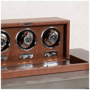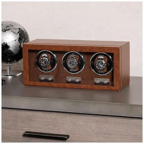 Artesanato de alta qualidade este enrolador de três relógios apresenta uma moldura de madeira envolta em couro PU com um interior de micro camurça. O hardware oculto dá a este enrolador uma sensação super luxuosa e sofisticada. Perfeito para exibir relógios sofisticados na mesa de cabeceira, estante, mesa ou cômoda. s suportes atualizados cabem na maioria dos relógios cada enrolador vem com 6 suportes de relógios ultramacios 3 de cada, pequeno e grande que podem ser compactados para caber em pulseiras masculinas e femininas de 16 a 23 centimetros. Para liberar o suporte do relógio, aperte os dois flanges e puxe o com cuidado. Para travar o suporte no lugar, aperte os flanges e deslize de volta para o copo, alinhando com os dois orifícios em cada lado do copo. Múltiplas configurações de TPD e rotação 3 modos de rotação modo horário, modo anti horário, modo horário e anti horário. Velocidades de 5 voltas por dia TPD 650, 750, 850, 1000, 1950 Cada relógio pode ter configurações diferentes para dar corda de maneira ideal aos seus relógios. Este enrolador usa 2 motores japoneses super silenciosos para garantir que não haja interrupções se estiver no quarto ou no escritório Marca: Não Informado