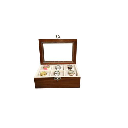 Prático e luxuoso, na linha madeira maciça encontrarmos um toque vintage, objeto decorativo onde são visíveis os veios naturais da madeira. Nossos estojos irão facilitar seu dia a dia com a organização e segurança que sua coleção precisa, além de proporcionar um ambiente mais sofisticado e elegante.Produzida com madeira natural de reflorestamento. Escolhida rigorosamente, totalmente tratada, tingida e envernizada externamente. Internamente, inclusive as divisórias são revestidas com nylon aveludado e as almofadas que acompanham o produto, normalmente são também em tecido aveludado. Na linha madeira maciça é possível observar os veios naturais da madeira. As dobradiças não são aparentes e possuem um limitador. A tampa possui visor com vidro transparente. Acompanha um fecho giratório de pressão em metal, ideal para colocar cadeado. Seus relógios sempre bem protegidos e acomodados confortavelmente, com toda segurança e facilidade no manuseio. Características das caixas para relógio: Produto fabricado em madeira maciça de qualidade, Padrão Imbuia, Não empena, Revestimento interno aveludado, inclusive as divisórias, Fecho giratório de pressão em metal suporta cadeado , Tampa de vidro 2 mm, Acompanha almofadas para todos os casulos Medidas aproximadas dos casulos larg x comp x alt : 7,5 x 7,5 x 7,0 cm.Relógios não acompanham o estojo Imagens meramente ilustrativas
