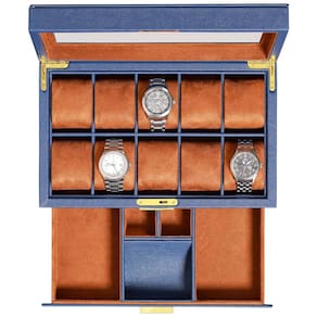 10 COMPARTIMENTOS DE RELÓGIO GRANDES E GAVETA DE VALET Cada almofada mantém um relógio pequeno ou grande perfeitamente no lugar, até um ao lado do outro. Há muito espaço entre a tampa e as almofadas para acomodar relógios de todos os tamanhos. Uma gaveta deslizante pode conter relógios e pulseiras adicionais ou oferece espaço extra para guardar suas abotoaduras, anéis, prendedores de gravata, óculos de sol, canetas, dinheiro, cartões ou suas ferramentas de relógio. QUALIDADE INCOMPARÁVEL E DESIGN SOFISTICADO Nossa caixa possui um design único e moderno que é a combinação perfeita de classe e funcionalidade. Cada caixa usa uma moldura de madeira envolta em couro PU de alta qualidade. O interior é revestido com um elegante tecido de micro camurça bege. PRESENTE PERFEITO Seja um presente de Natal, presente de aniversário para seu marido, presente de aniversário para seu filho, presente de Dia dos Pais para o pai ou mesmo dia das mães, você certamente encantará até o destinatário mais difícil de agradar. Nosso design unissex é perfeito para qualquer colecionador de relógios em sua vida Ou dê a si mesmo Seus relógios merecem Marca: Não Informado