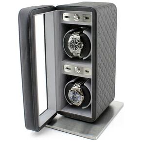 PROJETO DE QUALIDADE. O Heiden Monaco Double Watch Winder foi projetado com materiais de qualidade, como couro costurado em cruz, interior de linho cinza macio, travesseiro de relógio macio e muito espaço interior para guardar relógios grandes e grandes. A almofada do relógio pode ser usada nos lados planos ou redondos para segurar pulseiras pequenas e grandes. O enrolador de relógio usa o mais design japonês Mabuchi Motor and Gear. Ao ligar o relógio, você nem saberá que está ligado por causa do silêncio do motor. O movimentador de relógio foi projetado com magnetização zero para não prejudicar seus relógios. O movimentador de relógio é projetado nos EUA. O enrolador de relógio pode ser alimentado por 2 pilhas tamanho D ou pelo adaptador CA incluído 110 240V. Quando alimentado por baterias, durará de 1 a 3 meses, dependendo da configuração Marca: Não Informado