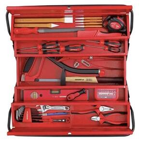 A Caixa de Ferramenta Sanfonada da Gedore Red é fabricada em chapas de aço, com pintura em vermelho. possui furo para utilização de cadeado e tem articulações rebitadas.