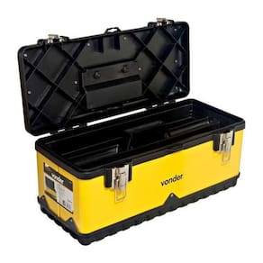 Caixa Ferramentas Metalica/Plastica CMV500 - Vonder 1 Caixa plástica/metálica para ferramentas. Possui partes em polipropileno, tampa com estrutura reforçada e bandeja plástica removível. Indicada para guardar, organizar e transportar ferramentas diversas. Comprimento: 50,5 cm Largura: 24,5 cm Altura: 22,5 cm Material: Aço carbono e polipropileno Capacidade de carga (kgf): 20,0 kgf Cor da caixa: Preta e amarela Modelo: CMV 0500