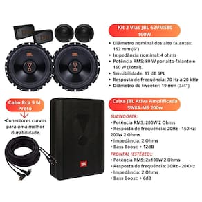 Caixa JBL Ativa Amplificada SW8A-MS 200w + Par Kit 2 Vias JBL 62VMS80 160W + Rca