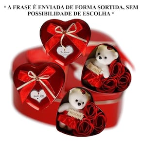 Rosas artificiais com urso luxo na caixa presente Este elegante conjunto é composto por 3 rosas artificiais acompanhadas de um delicado urso de pelúcia, acondicionados em uma caixa presente sofisticada. É a escolha ideal para presentear em datas especiais como aniversários, dia das mães, dia dos namorados ou para demonstrar carinho em qualquer ocasião. - medidas: l - 12,5cm x c - 11,5cm x a - 5cm - composição: sabão, poliéster, ferro, espuma e madeira A frase é enviada de forma , sem possibilidade de escolha Sofisticação e delicadeza em um presente único. Ideal para quem valoriza detalhes e quer surpreender com bom gosto. Marca: Não Informado Ean: 7899658440404