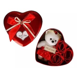 Caixa Lata Presente Rosas Artificiais Urso Pelúcia Coração