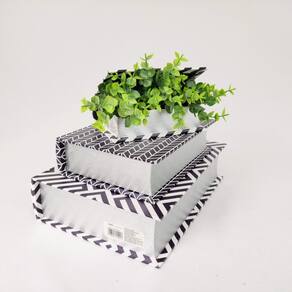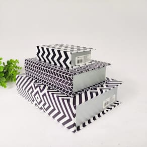 Caixa Livro Decorativa Zig Zag 3 Peças 30/23/16Cm Preto/Branco