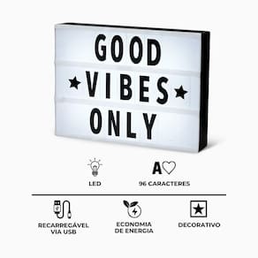 - Design Versátil: Inspirado no estilo vintage dos letreiros de cinema, ideal para criar mensagens criativas, inspiradoras ou divertidas.
