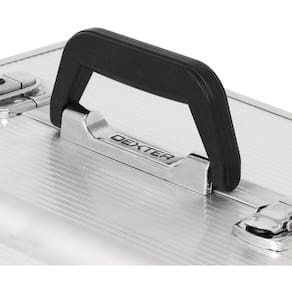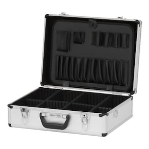 Maleta Alumínio com 17 bolsos para organizar ferramentas, 7 paletas de divisores interno e cinto para alça.