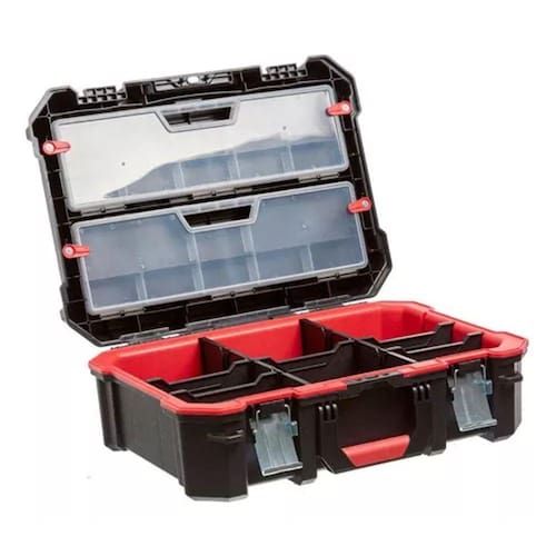 Organização Eficiente O design inteligente da caixa de ferramentas inclui compartimentos e bandejas removíveis que permitem organizar suas ferramentas de forma eficiente. Isso facilita o acesso rápido às ferramentas necessárias e mantém tudo organizado e em ordem.
