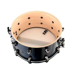 Caixa Black Panther Phatbob 14? x 7?, casco 12mm em Maple, acabamento laqueado preto alto brilho, 10 afinações, aros Mapex SonicSaver™ 2.3mm, esteira com 20 fios, ferragens cromadas, peles Remo® AmbassadorCoated™.
