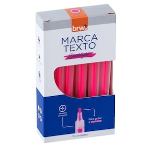 Caixa Marca Texto Fluorescente Transparente 12 UNIDADES BRW Rosa -