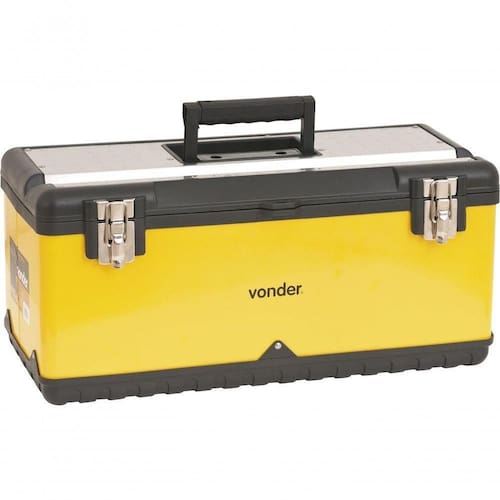 Caixa Metálica Para Ferramentas Baú 590x285x270mm Com Bandej Conteúdo da embalagem 1 Caixa metálica para ferramentas Aplicações e dicas de uso Indicada para guardar, organizar e transportar ferramentas diversas Destaques e diferenciais Possui partes em polipropileno, tampa com estrutura reforçada e bandeja plástica removível DETALHES TÉCNICOS