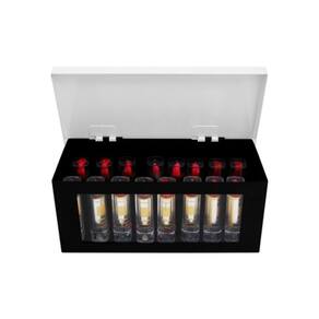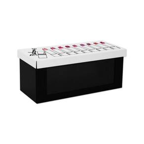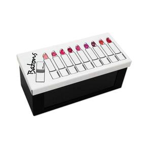 A Caixa Meus Batons para guardar seus batons de forma prática e organizada. Perfeita para facilitar a escolha da cor na hora do make. Código de Barras: 7894935098118 Dimensões da Peça: 22 x 10 x 9 cm Composição: Chapa de aço com pintura epóxi preta, impressão colorida na tampa branca e acrílico transparente frontal.