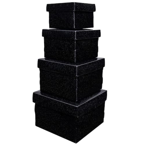 - Marca: Dello - Linha: Secrets - Cor: Preto - Caixa com efeito de glitter - Quadrada mini - 01 Kit com 04 caixas de cores iguais - Caixa 1: Capacidade 0,9 litros, Dimensões L x A x C : 110 x 75 x 110 mm - Caixa 2: Capacidade 1,5 litros, Dimensões L x A x C : 130 x 90 x 130 mm - Caixa 3: Capacidade 2,8 litros, Dimensões L x A x C : 160 x 110 x 160 mm - Caixa 4: Capacidade 4,2 litros, Dimensões L x A x C : 180 x 130 x 180 mm - Contém Aroma Artificial - Produzida em Plástico Polipropileno - Referência: 2231.P