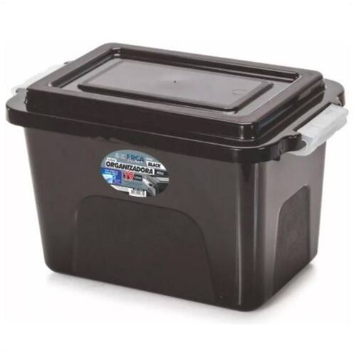 Caixa organizadora alta preta 19 litros com tampa e trava Caixa organizadora alta black 19 l com tampa e trava