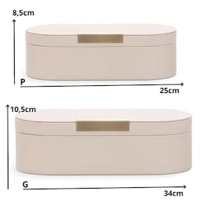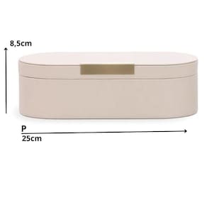 Dimensões Altura:8,5cm Largura:25cm Profundidade:12cm Material: mdf e Revestimento PU Cor: Bege