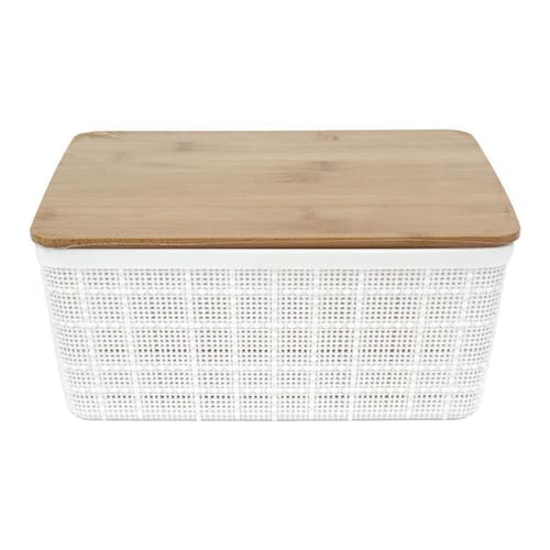 Caixa Organizadora com Tampa Bambu Branco 10cm - A\CASA
