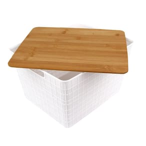 Caixa Organizadora com Tampa Bambu Branco 21,5cm - A\CASA