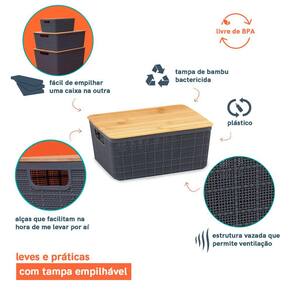 :: design moderno e natural: com corpo de plástico e tampa de bambu, além de organizar, essa caixa também ajuda a decorar ambientes. fica uma graça ;)