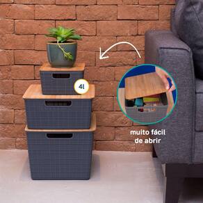 :: essa é a caixa organizadora 4L com tampa de bambu da OIKOS.