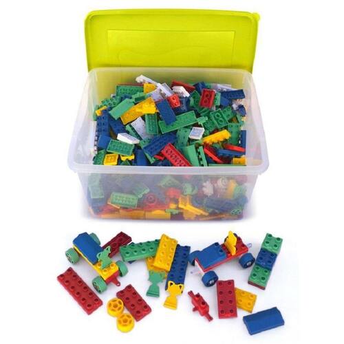 CONTÉM Caixa Organizadora em plástico medindo 45x38x24cm contendo 800 peças coloridas , inclusive com telhados, bonecos e eixo com rodas. USO Ideal para trabalhar a coordenação Motora fina, as cores e a criatividade da criança. EMBALAGEM Bau em plástico CE-BRI/ICEPEX - N 00928-96