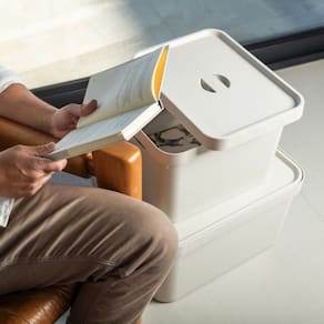 Com as caixas cube é possível encaixar e empilhar de forma estável mesmo em tamanhos diferentes, facilitando a organização. São produzidas em plástico atóxico (polipropileno) com textura externa para diminuir riscos e arranhões e acabamento fosco na superfície interna.