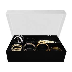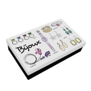 Caixa Organizadora de Aço Minhas Bijoux Básica, prática e com muito estilo. Para você organizar de maneira fácil e prática suas bijoux... Organize suas bijoux e decore seu ambiente. Com Divisórias interna para facilitar na organização de suas bijoux. Dimensões da Peça: 30,8cm x 19cm x 7,1cm Composição: Chapa de aço com pintura epóxi preta e branca com impressão. Marca: Geguton Imagens meramente ilustrativas Não Acompanha Acessórios Obs: Não Acompanha Bijoux Ean: 7894935100798