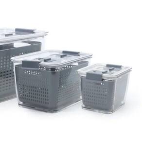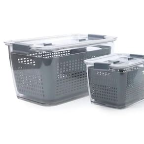 Atenção: as cores dos produtos podem sofrer variações em função das características do monitor e do a name=hlk149387685/acelular. Caixa organizadora de geladeira com tampa jogo com 3 peças plástico incolor / cinza 15x18,5x29cm jg c/3 pc - cesta interna e trava na tampa, capacidade total 1565ml