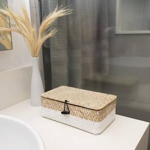 Características: Material Sustentável: Feita de seagrass, uma fibra natural e renovável, esta caixa é uma escolha consciente para quem se preocupa com o meio ambiente. Design Funcional: Com dimensões ideais para armazenar diversos tipos de objetos, desde livros e revistas até acessórios e brinquedos. Acabamento Artesanal: Cada peça é cuidadosamente trançada à mão, garantindo um acabamento único e cheio de personalidade. Alças Laterais: Facilitam o transporte e manuseio da caixa, tornando-a ainda mais prática para o dia a dia. Versatilidade: Pode ser utilizada em diversos ambientes da casa, como sala de estar, quarto, escritório ou até mesmo banheiro.